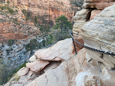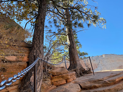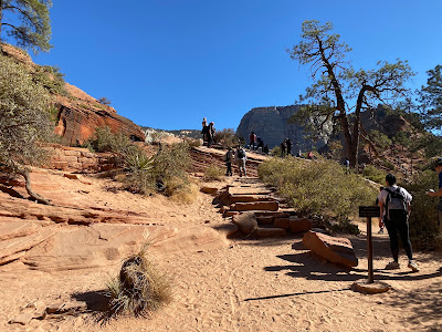 I learned that I was SOL for tickets and my only choice was the last hop on, standby shuttle runs that start at 3 PM. Upon arriving to a pretty long line at I also learned that the last shuttle back from the trail head was at 7:15. Due to the long line and limited riders allowed per bus I didn’t get to the trail head until after 4. The tourist guide says this is a 4-5 hour hike, is very strenuous, steep with exposure to long drop-offs with 1,500 of elevation gain. I had just over 3 hours before the last shuttle and risked a 6 mile walk back to my truck at the visitors center but decided to give it a go.