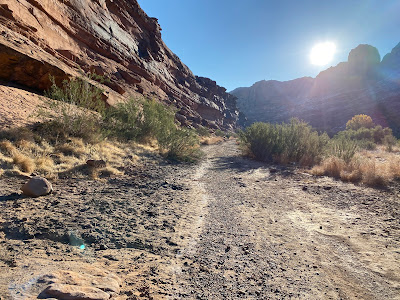 After a few miles you enter a short tunnel followed by a longer one. The tunnel is pitch black. Sunglasses must be removed to make it through safely. During the 1/2 mile or so you will see glimpses of what awaits through openings in the tunnel wall.