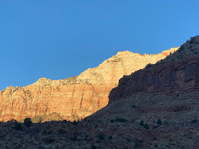 It got pretty chilly at night. It went down to the 30’s but was quite warm in my sleeping bag. My preparations with an ample supply of wet wipes would prove for naught as the showers were plentiful and super clean. Still benefiting from jet lag, it was off to Zion in the early AM after getting some gas and a banana for breakfast. Here are some pics from that 2 hour 86 mile ride.