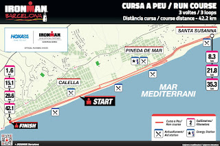 The run is a completely flat 3 loop 26.2 miles (42k) marathon course mainly along a scenic beach and train service road. The turnaround is deviously placed 100 yards from the finish so you hear all the excitement and “….You are an Ironman” announcements for others every time you pass and have to go out again for the next ~9 mile loop.