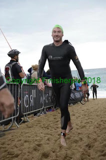 After the final turn buoy I was ready to leave my breakfast out there. A lifeguard on a board asked if I was OK. I guess I didn’t look too good. Getting from there to the swim exit was really tough. There were volunteers on the beach yelling at swimmers to watch out as giant waves were crashing on them behind their back making it really tough to finally exit the water.